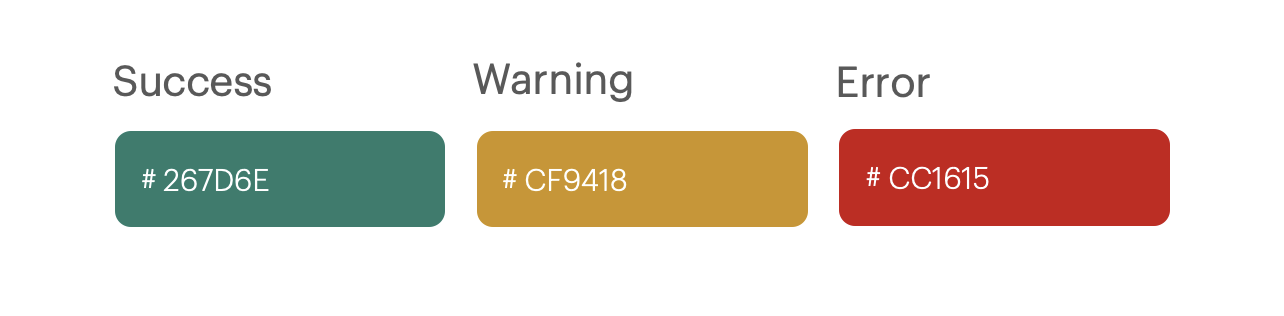 In addition to the neutral and accent colors, the color system includes semantic color role for success, warning and error.